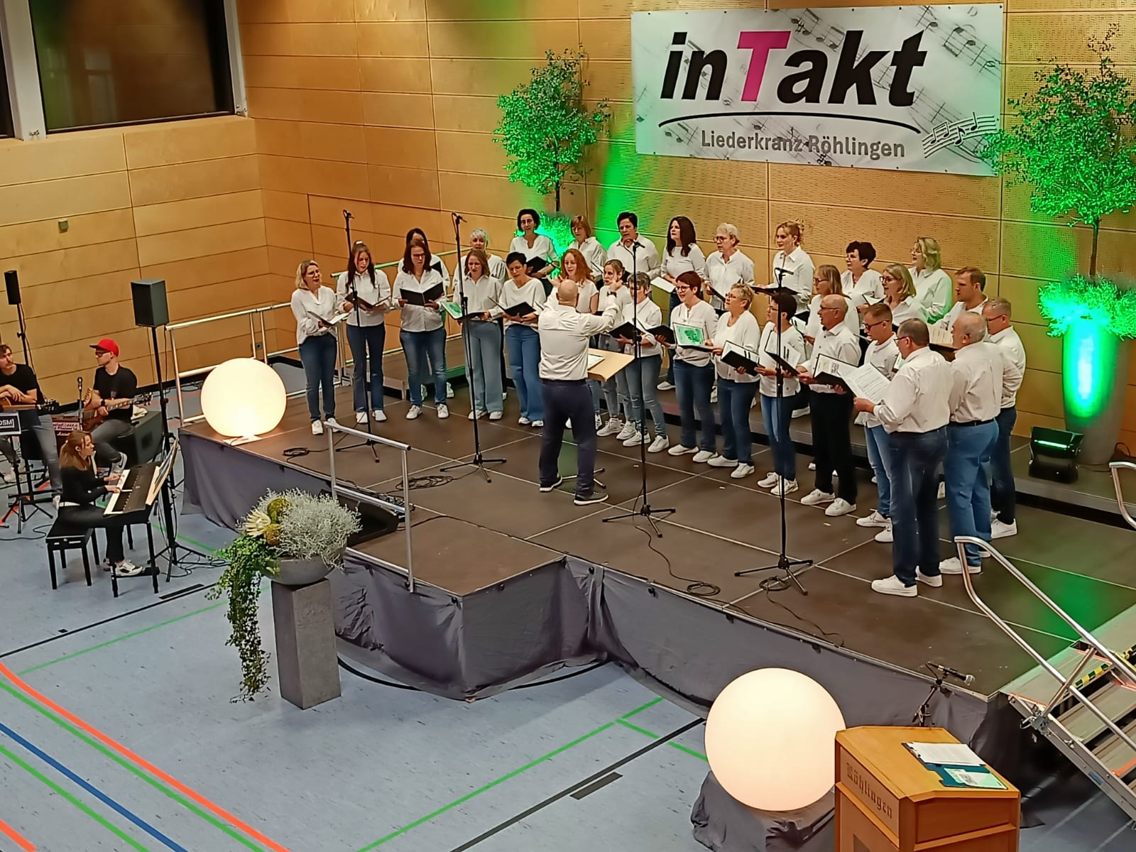 Am vergangenen Samstag lud der Liederkranz Röhlingen anlässlich des 30-jährigen Gründungsjubiläums seines Frauenchores zum besonderen Konzertabend in die Sechtahalle ein. Unter dem Dirigat von Chorleiter Peter Waldenmaier eröffneten Frauen und Männer als gemischter Chor mit den Beiträgen „Welch ein Geschenk ist ein Lied“ bzw. „Ein Lied kann eine Brücke sein“. Nach einer kurzen offiziellen Begrüßung durch Vorsitzenden Eugen Veile ergänzten dann auch die Kinder des Schulchores der JSvD-Schule Röhlingen den gemischten Chor zu den vorgetragenen Liedern „Für alle“ und „Ich wollte nie erwachsen sein“. Welch Bereicherung diese Kooperation Schule-Verein darstellt konnten die singbegeisterten Kinder dann noch einmal eindrucksvoll mit ihren Solobeiträgen „Can`t stop the Feeling“ bzw. „Der Baum des Lebens“ demonstrieren. Im Anschluss dann gehörte dem Jubelchor – nämlich den Frauen- die Bühne: mit den Beiträgen „Butterfly“, „Che Sara“ und „Forever young“ boten die Damen sowohl klassische als auch moderene Chorliteratur. Dafür war im Vorfeld extra ein Projektchor und damit der Chor personell verstärkt worden. Die Mitinitiatorin bei der Gründung des Chores im Jahre 1994/1995, Frau Gisela Hipp, berichtete in einem kurzen Vortrag näher über die damaligen Gründe, weshalb nun auch die Frauen ihren eigenen Chor ins Leben rufen und damit gemeinsam Lieder singen wollten. Zum Abschluß des 1. Konzertteils trat dann noch der junge Chor „inTakt“ des Liederkranzes auf, unter der Leitung von Dmitry Formitschev präsentierte man gekonnt „Ein Kompliment“, „80 Millionen“ und „Fields of Gold“. Nach der ca. 30 minütigen Pause durfte dann der Männerchor die Lieder „Junger Mann im Frühling“, „Frühlingsboten“ und „Arcobaleno“ zum Besten geben. Darauf durfte sich das Publikum auf den Gastchor des Abend, dem Frauenchor „Stella Maris“ aus Zöbingen freuen. Unter der Leitung von Daniela Hoffmann enterte man unter den schmissigen Melodien von Abba („Ring-Ring“, „Andante“, „Mamma-Mia, „Super-Trouper“) die Bühne, auch die dazu passenden „Disco-Oberteile“ versetzten die Zuhörer in die 70er Jahre. Unter tosendem Beifall brachte man gerne noch als Zugabe „Thank you for the music“. Den Abschluss bildeten dann alle Chöre des Liederkranzes gemeinsam mit „Träume sind stärker“ bzw. „Lieder“. Insgesamt gesehen ein sehr gelungener und abwechslungsreicher Abend:)
